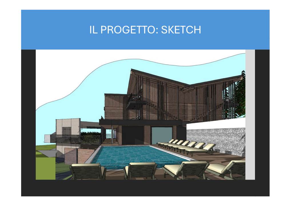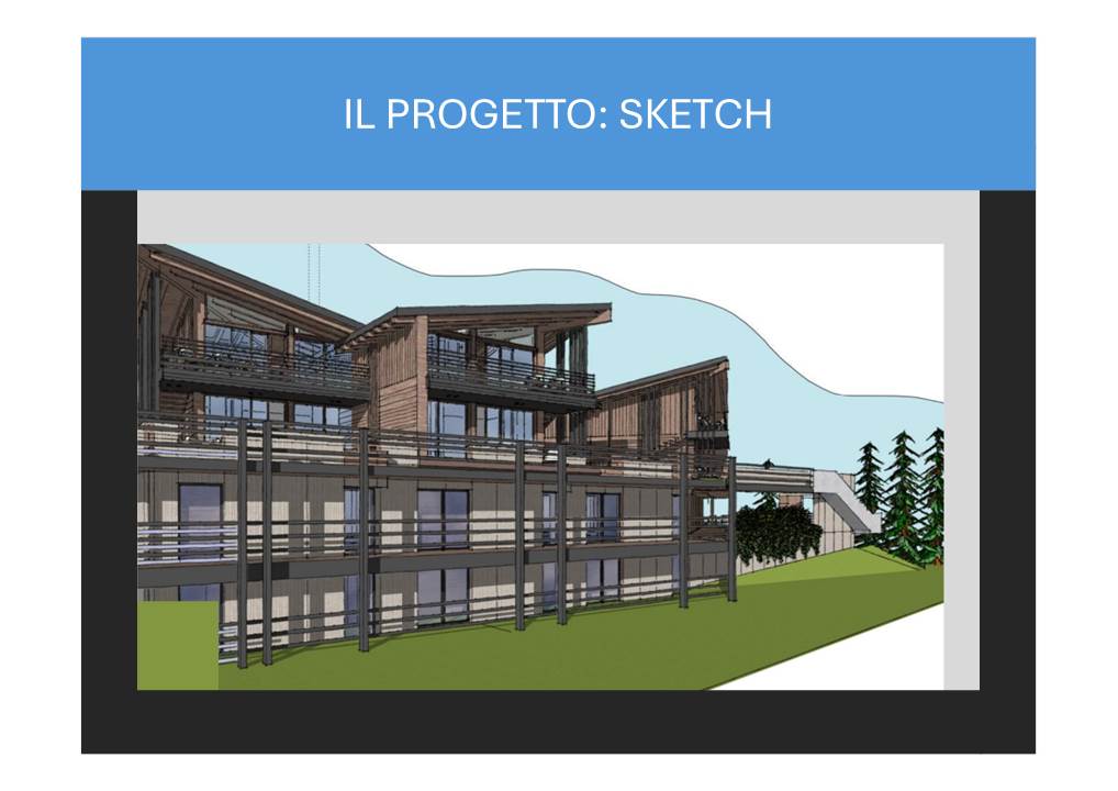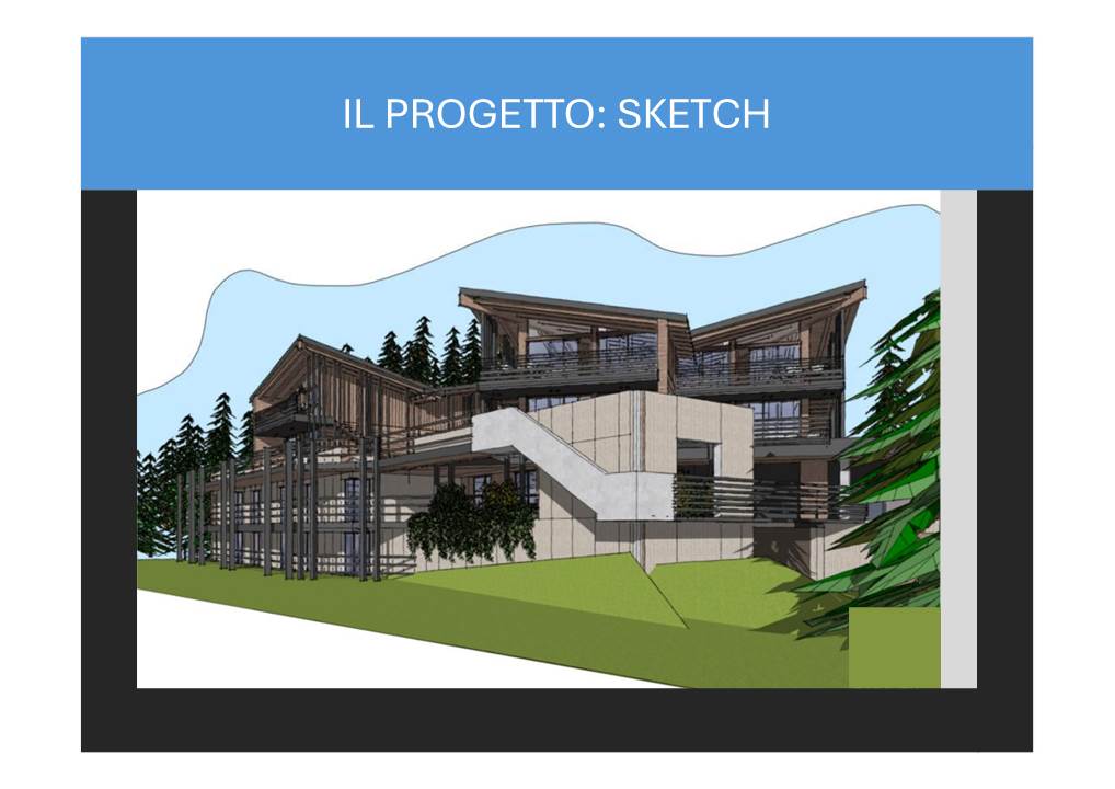 Il complesso si estende su 10.000 mq, con circa 3.000 mq dedicati alla struttura ricettiva e il resto immerso nel verde. Il progetto prevede una ristrutturazione e ampliamento della struttura esistente, mantenendo il legame architettonico con il contesto montano.