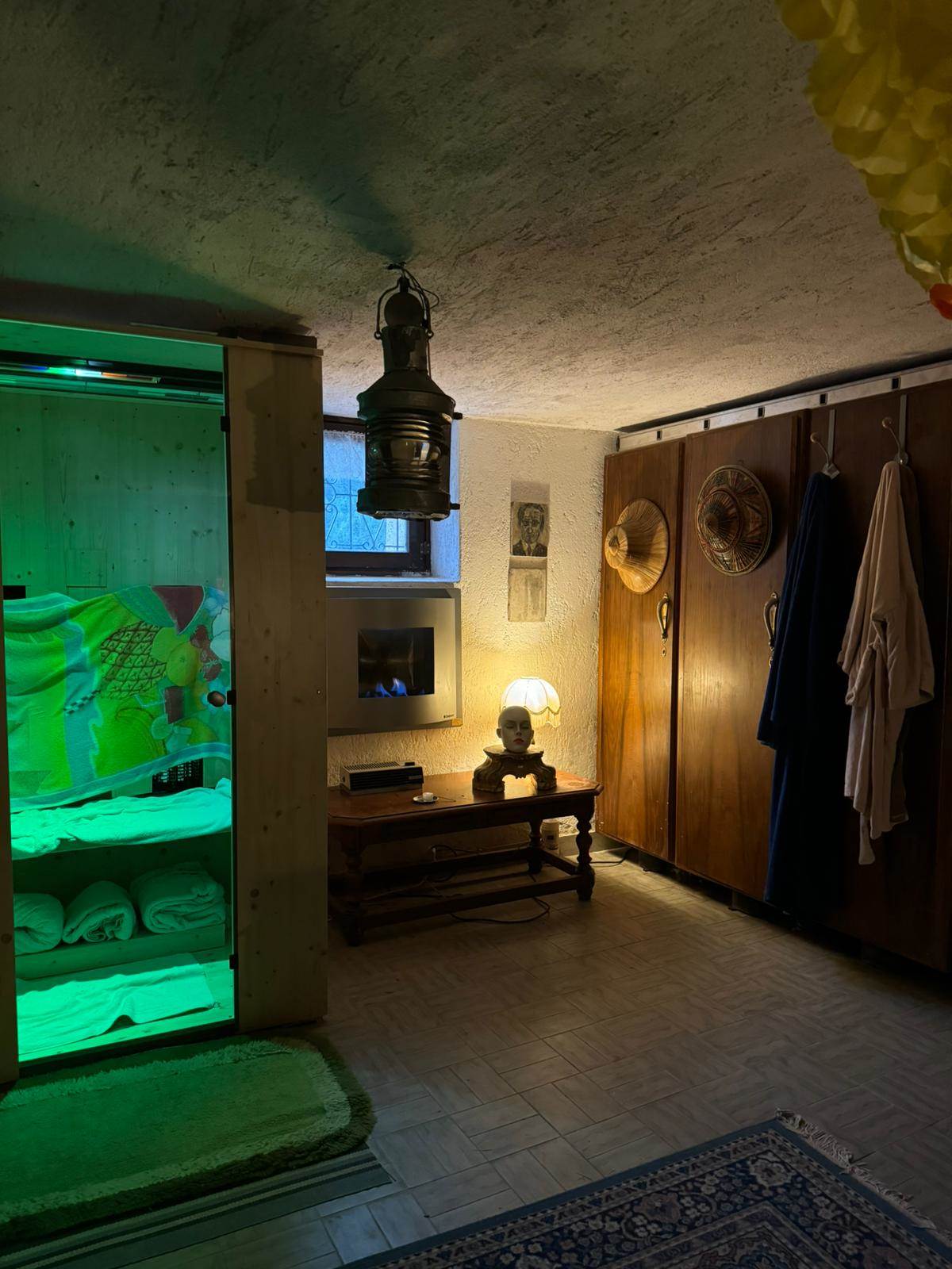 --Autorimessa attualmente allestita come taverna e area wellness con sauna