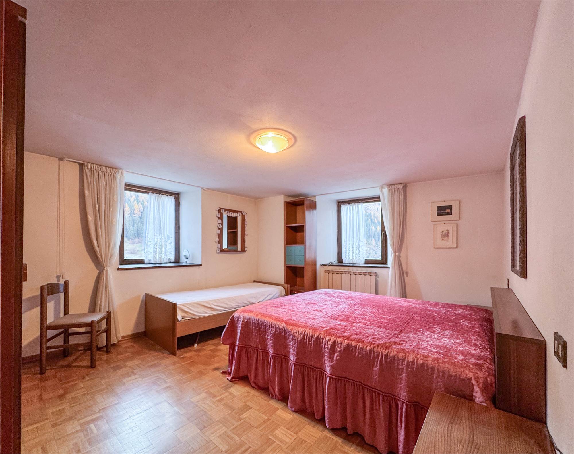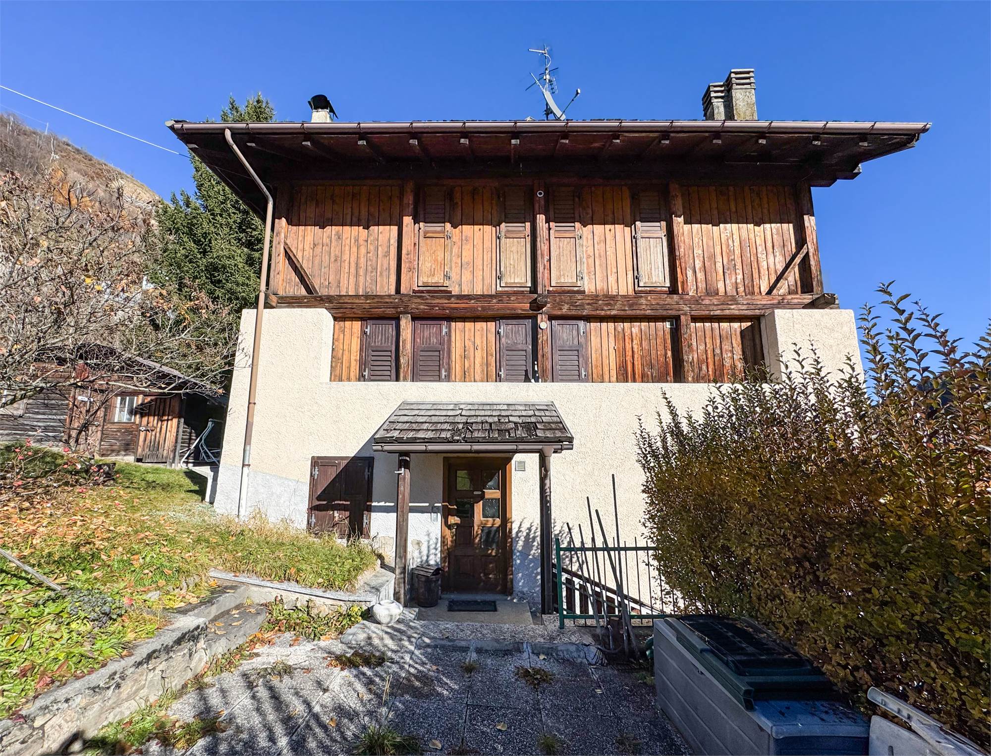 A Vermiglio, all’ingresso del paese, proponiamo in vendita un affascinante maso indipendente in posizione soleggiata, composto da due appartamenti VENDIBILI INSIEME O SEPARATAMENTE con giardino privato, splendida vista sulle montagne e accesso in ogni stagione grazie allo sgombero neve comunale fin davanti alla porta.