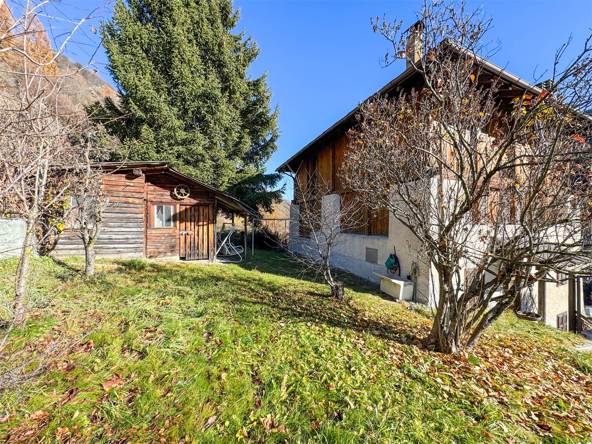 A Vermiglio, all’ingresso del paese, proponiamo in vendita un affascinante maso indipendente in posizione soleggiata, composto da due appartamenti VENDIBILI INSIEME O SEPARATAMENTE con giardino privato, splendida vista sulle montagne e accesso in ogni stagione grazie allo sgombero neve comunale fin davanti alla porta.